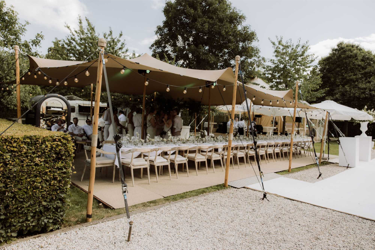 - Volledig op maat ingericht: van stretchtent tot verlichting, meubilair en decoratie. Alles wordt afgestemd op uw wensen.