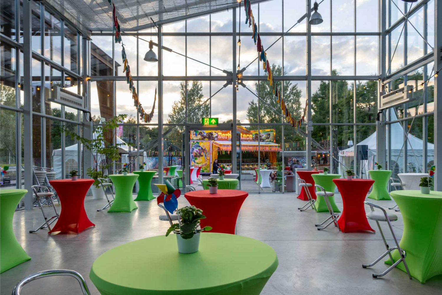 De avond startte op het buitenterrein van onze locatie Brightlands Campus Greenport Venlo, dat door ons volledig was getransformeerd tot een levendige kermissetting. Gasten werden ontvangen in een kleurrijke paradesfeer, compleet met foodkraampjes, vrolijke aankleding en echte kermisattracties. Van de kleinste decoraties tot de opvallende eyecatchers: het voelde alsof je werkelijk midden op een kermis stond.